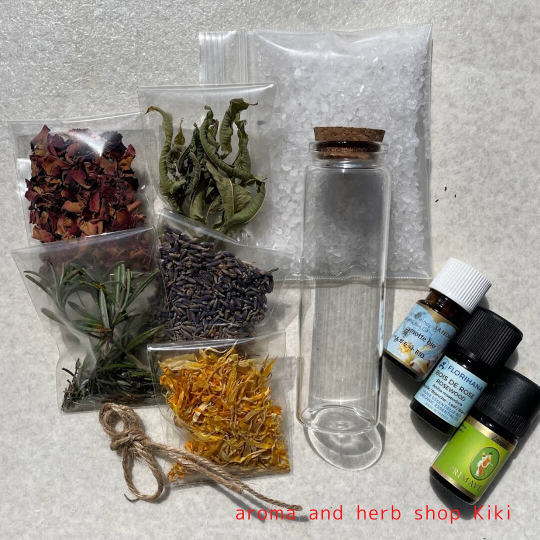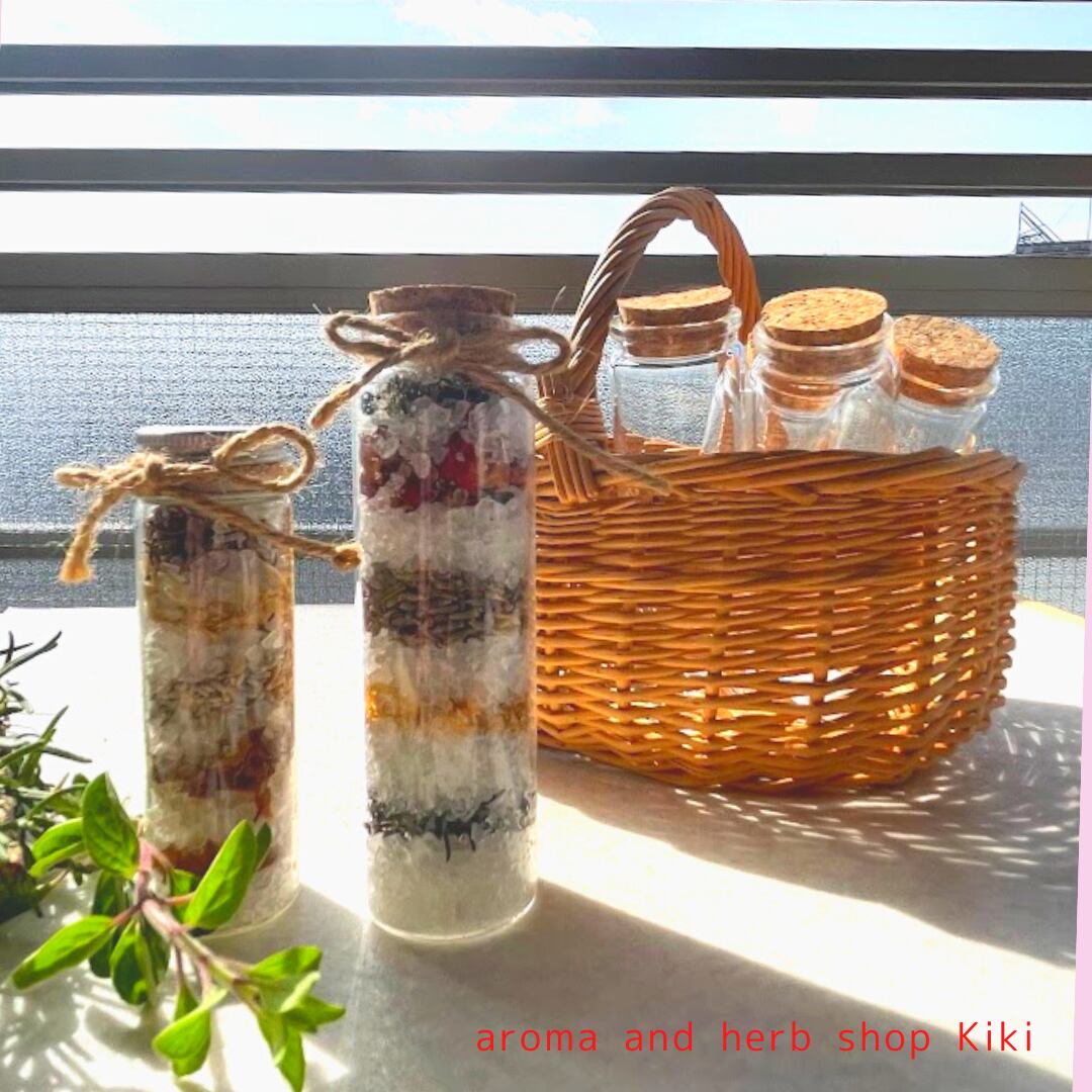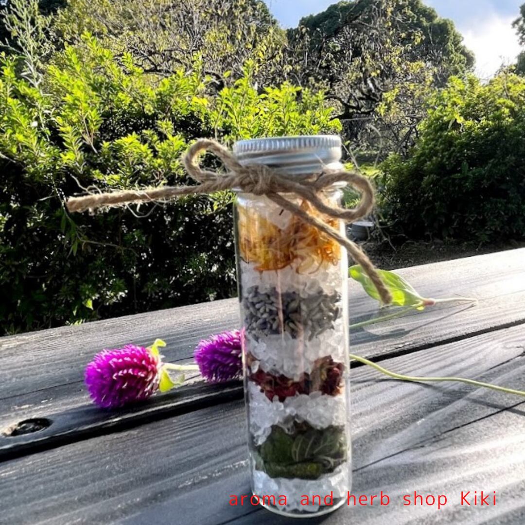 お気に入りの精油で香りをつけた祖塩に混ぜ込みます。